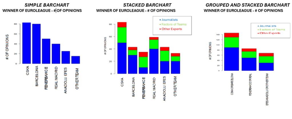 EXAMPLE: We asked 300 basketball journalists, team officials, and former players which team will win next year’s EuroLeague. The table below shows their answers, followed by a pie chart.