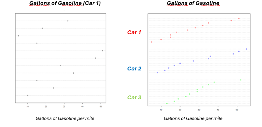 For more complex comparisons, alternative forms of (grouped, stacked) are used